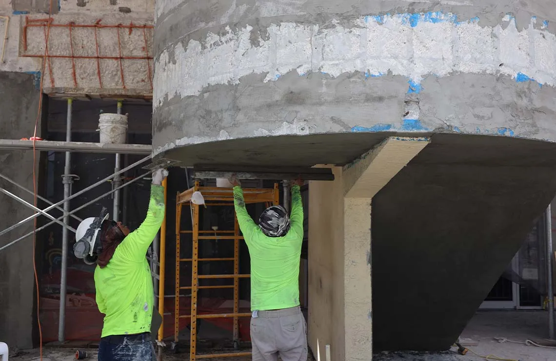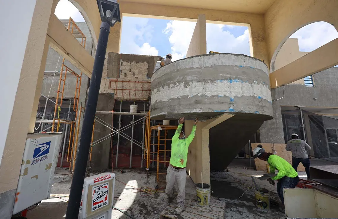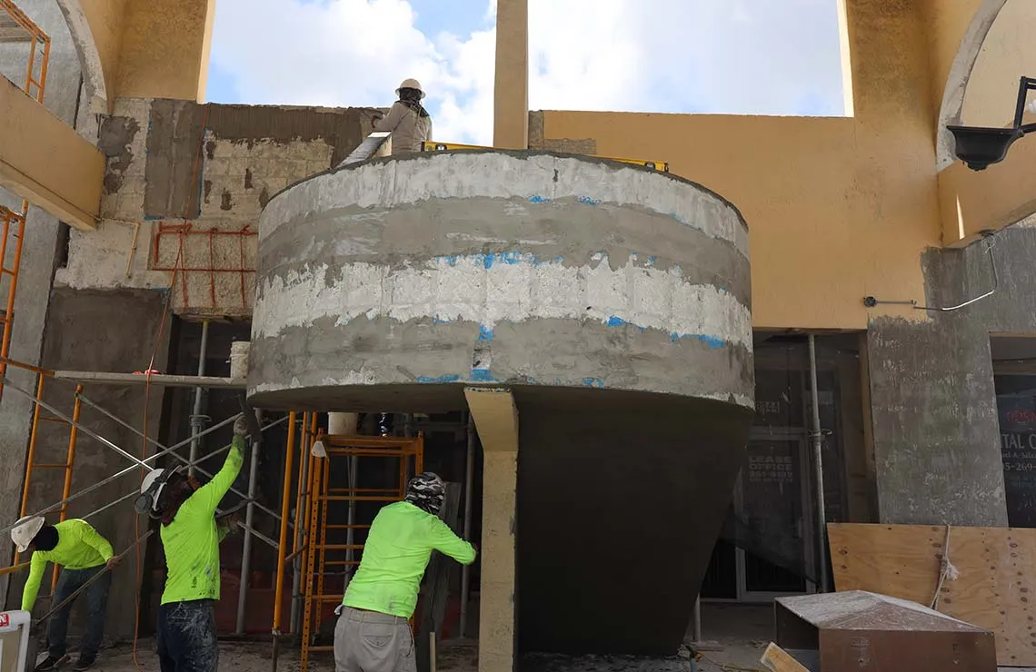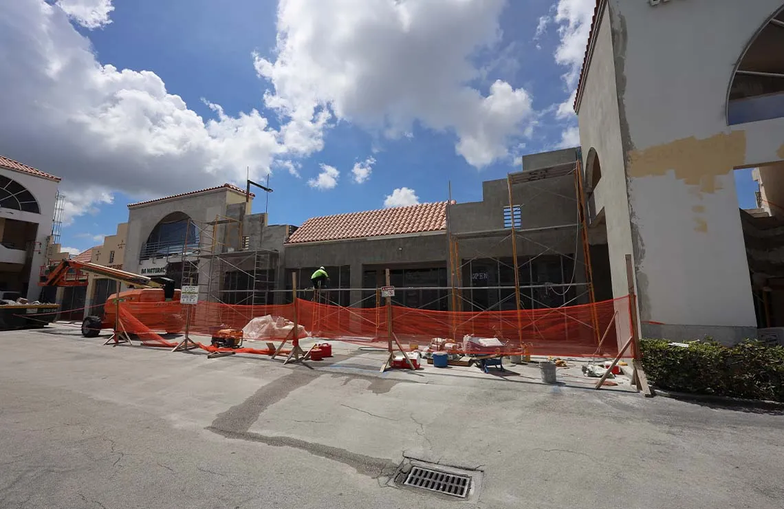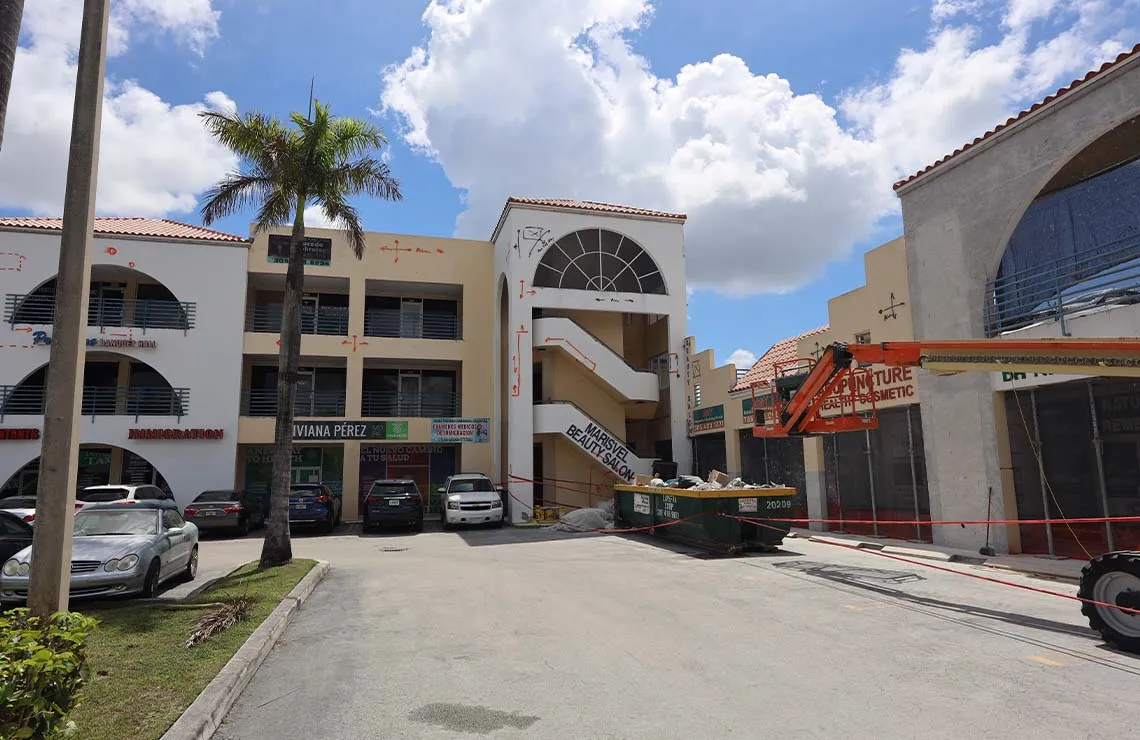 This job consists of the work part of the building’s 40 year recertification program. We’ve conducted waterproofing and installed epoxy of the flooring and completely restoring the concrete for the shopping plaza.
